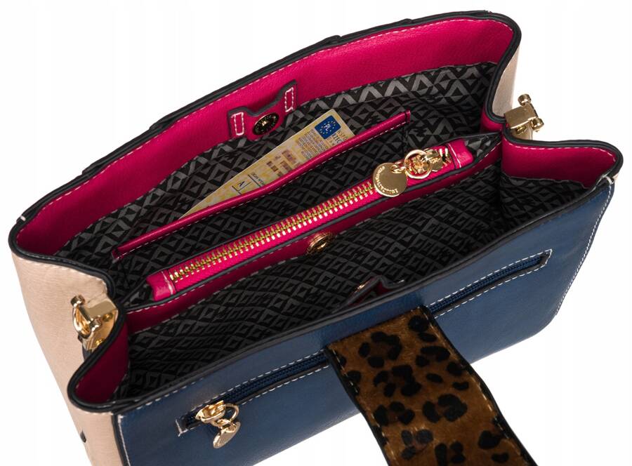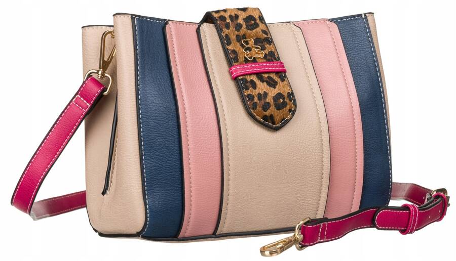 Odszyta ze skóry ekologicznej jakości PREMIUM. Zgrabna torebka z paskiem w panterkę zapinana na zatrzask magnetyczny. Torebka pomieści wszelkie drobiazgi. Ma 3 kieszonki wewnątrz i 1 zewnętrzną. Środek na podszewce. Listonoszka zawieszona na pasku.