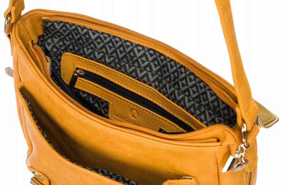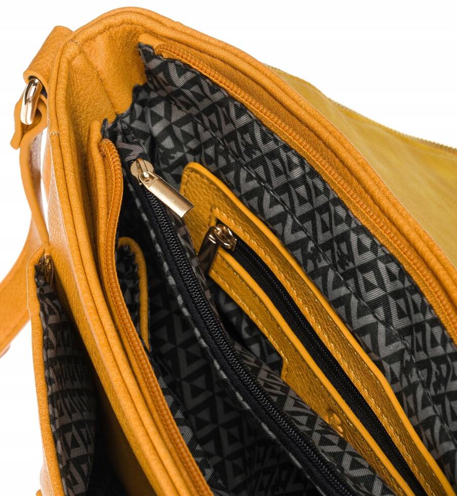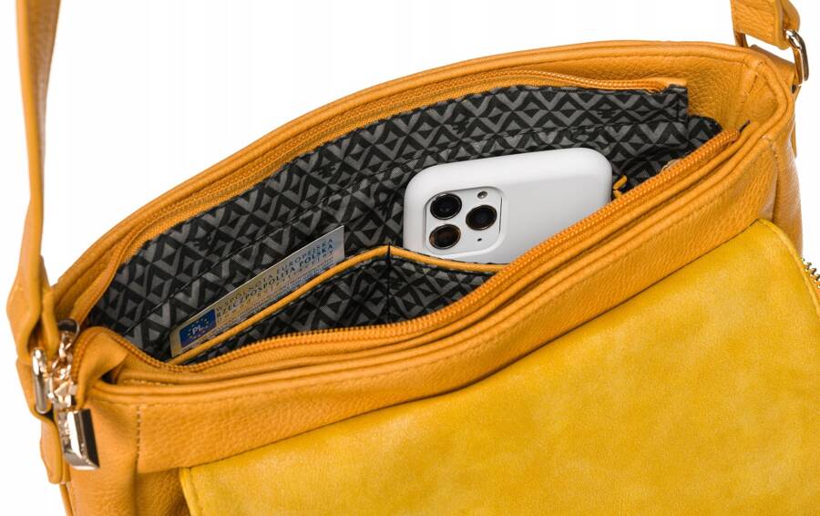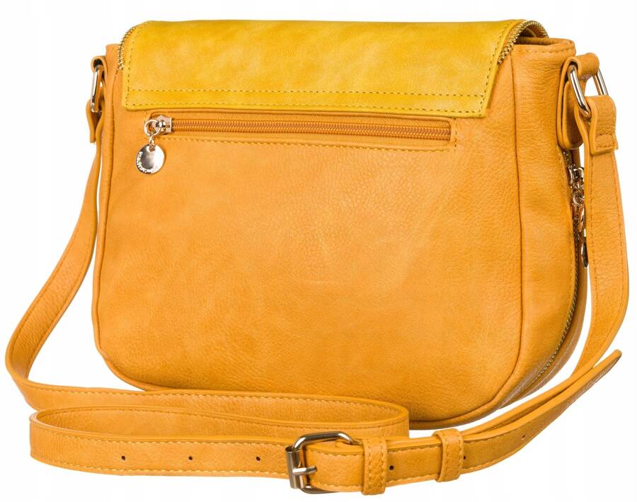 Ciekawa listonoszka damska wykonana z wysokogatunkowej skóry ekologicznej i eko zamszu, którym obszyta jest klapka. Torebka, mimo niewielkich rozmiarów, posiada aż 2 komory i 6 kieszonek na drobiazgi. Zawieszona na długim pasku z opcją regulacji długości.