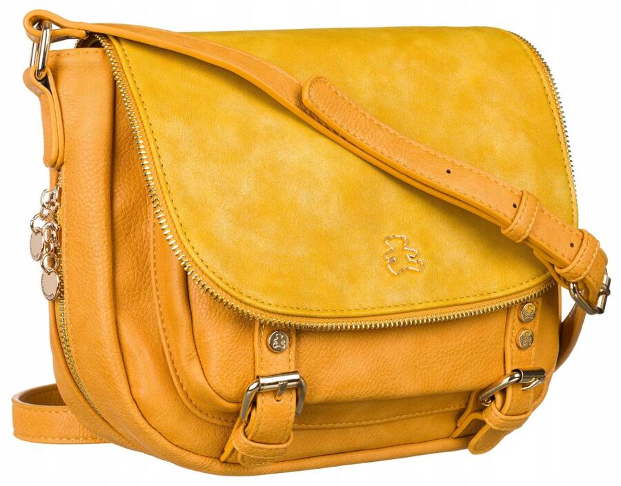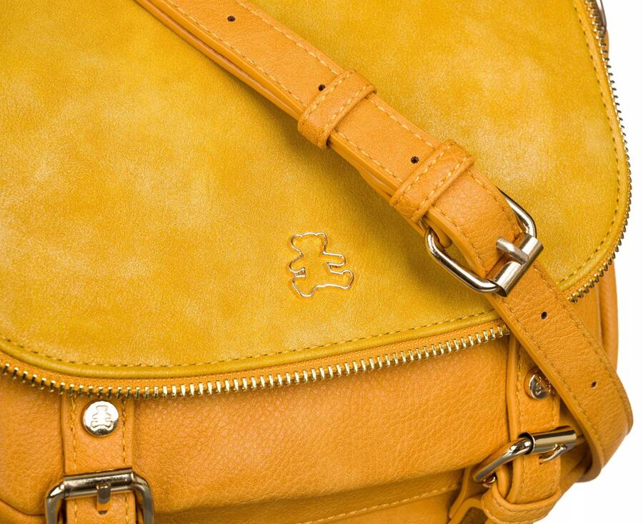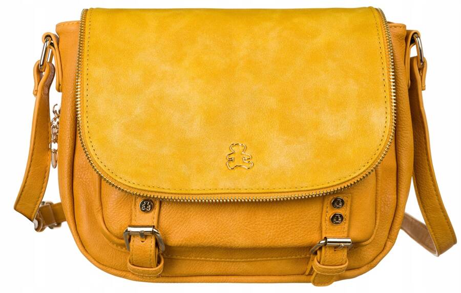 Śliczna damska torebka typu listonoszka. Mała i poręczna, zamykana klapką. Na froncie umieszczone jest subtelne logo w kształcie misia.